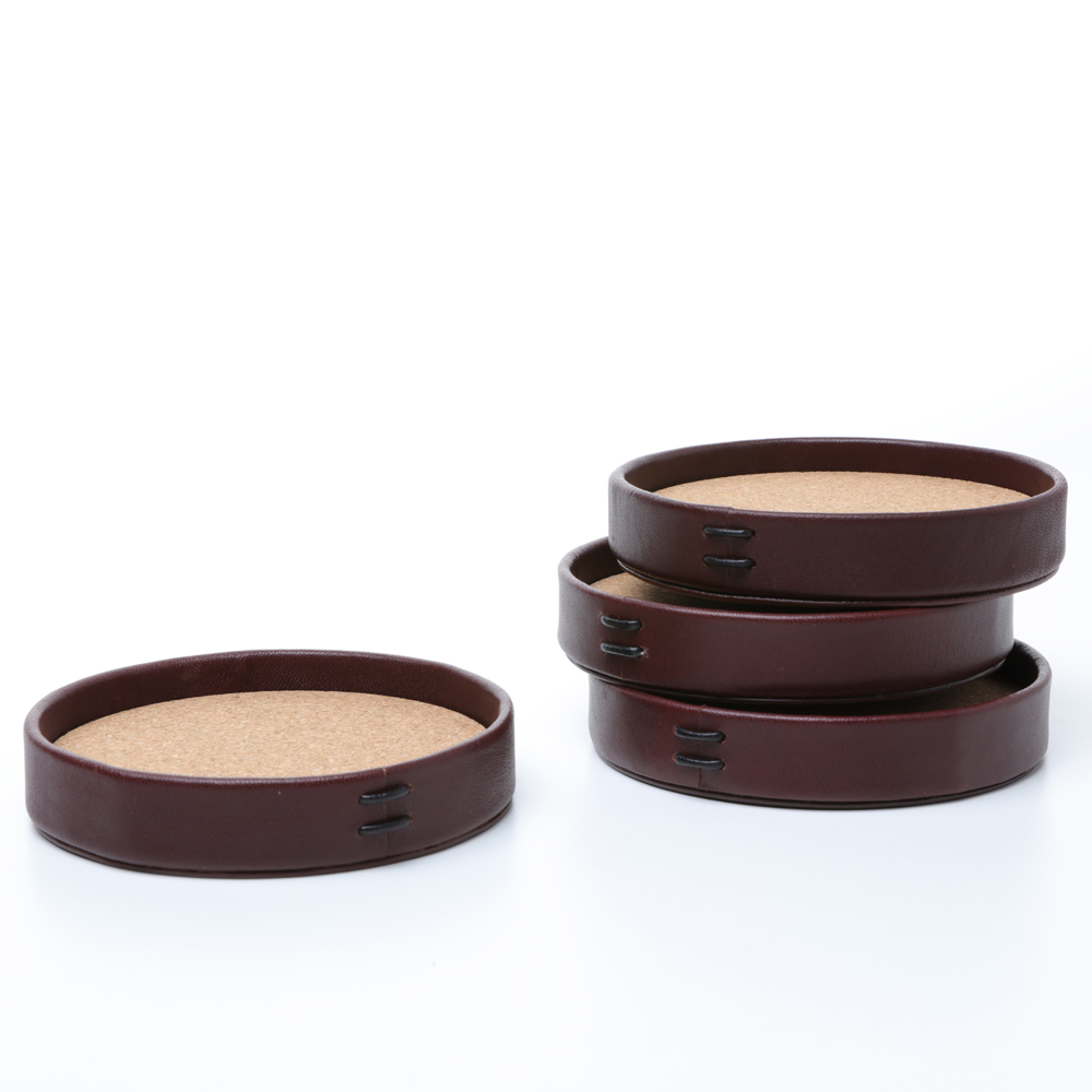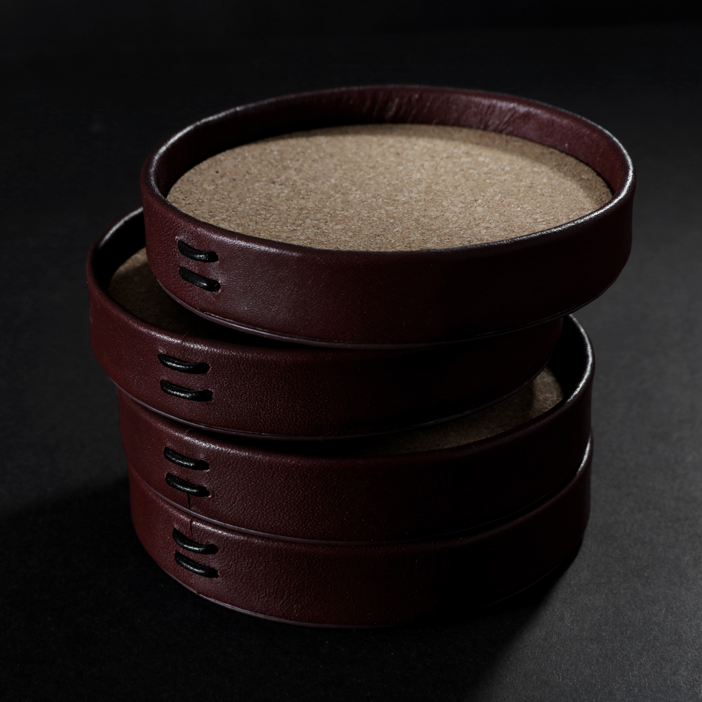 LIITON 4-pack glasunderlägg av fullnarvsläder och kork. Håller din bar och soffbord fria från kondens och spill.
