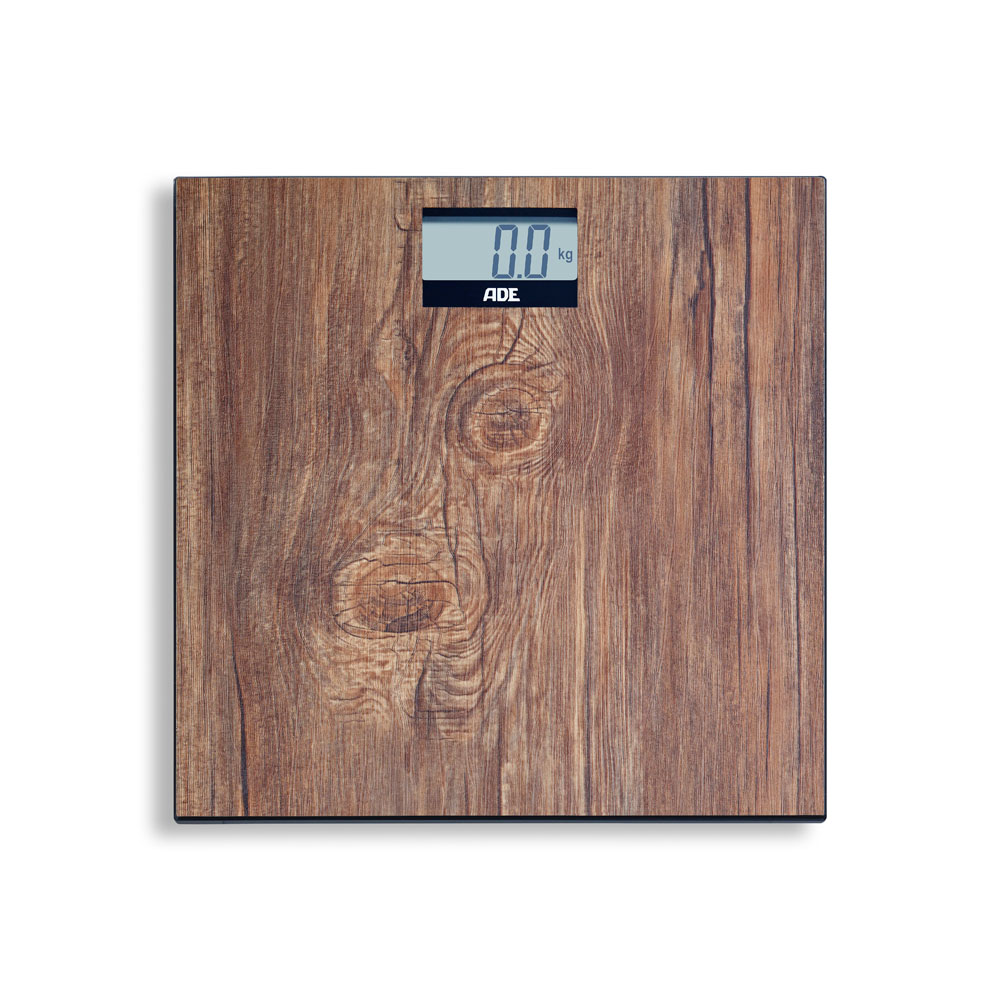 ADE Badrumsvåg med lantlig känsla. Vägningsytan är gjort av säkerhetsglas.