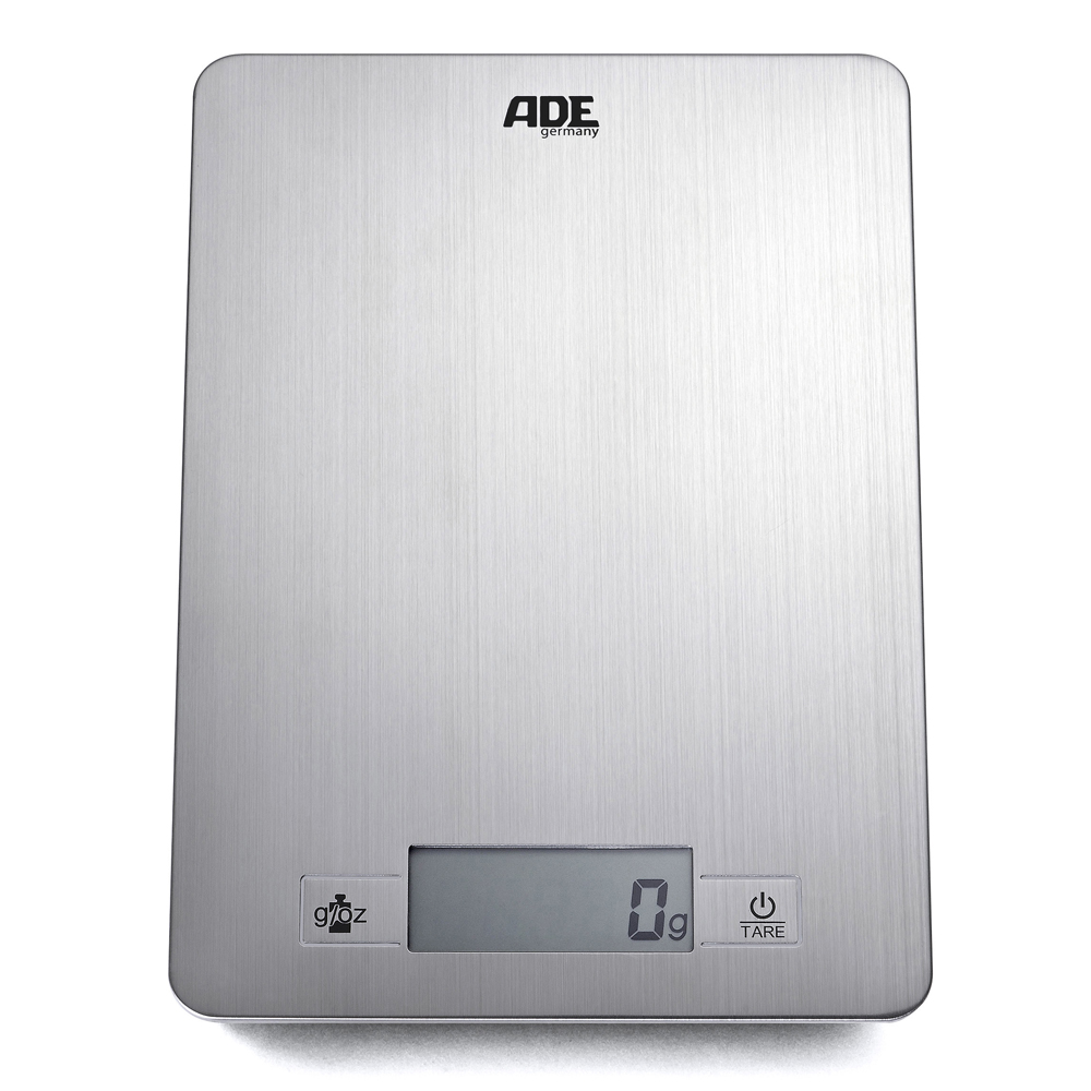 Denna ADE-köksvåg med en vägningsyta tillverkad av hygieniskt, borstat rostfritt stål och med en stor LCD-display (60 x 35 mm) är helt enkel och snygg.