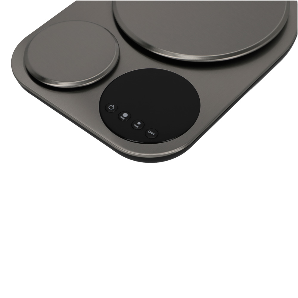 ADE Köksvåg är en dubbelvåg med 2 plattformar som kan användas oberoende av varandra och erbjuder 2 olika viktkapaciteter och enheter. Perfekt för att baka bröd eller pizza, exakt vägning av jäst. Perfekt för espresso och kaffe, exakt mätning av kaffebönor.