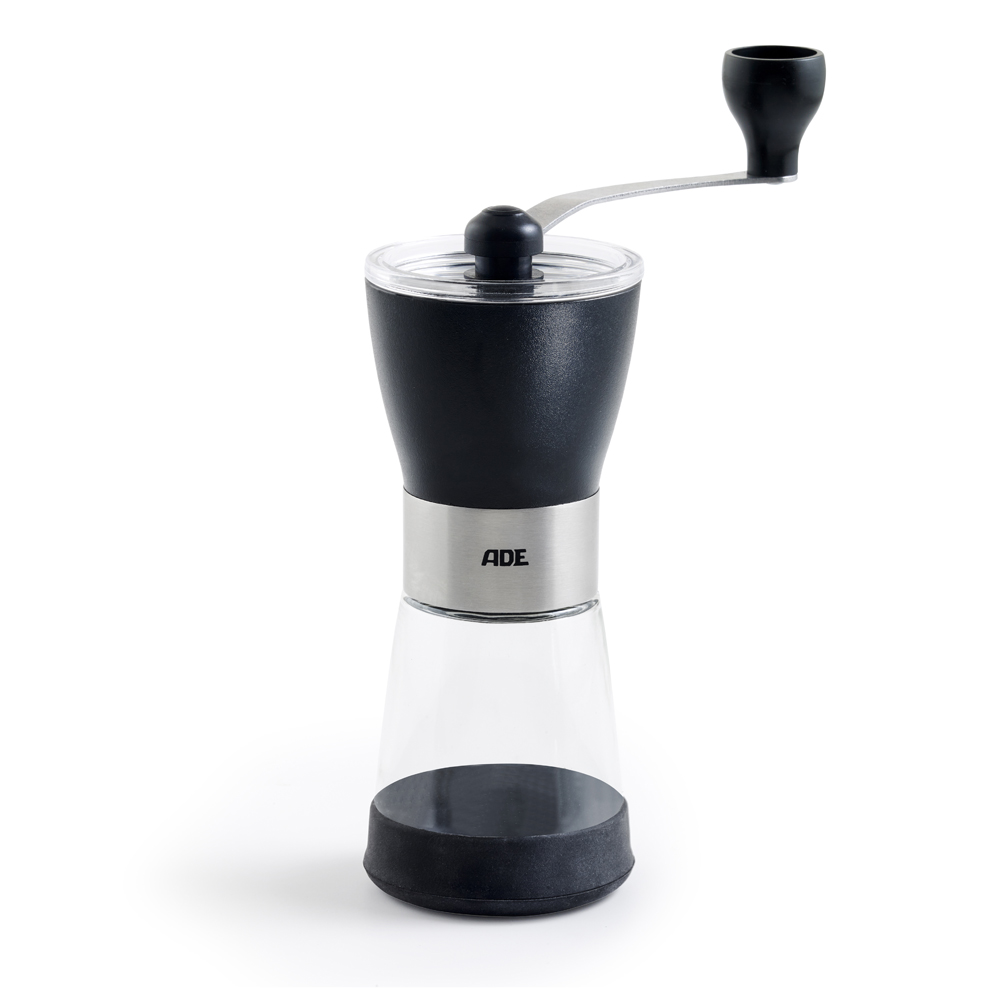 ADE Kaffekvarn gör det enkelt att njuta av gott kaffe. Den robusta keramiska kvarnen möjliggör en malningsgrad från fin till grov, helt individuell och lämplig för respektive kaffebryggningsmetod. Bönbehållaren skyddar bönor mot fukt och damm är tillverkat av glas - även bra för förvaring av det malda kaffet (upp till 65 g kaffe).