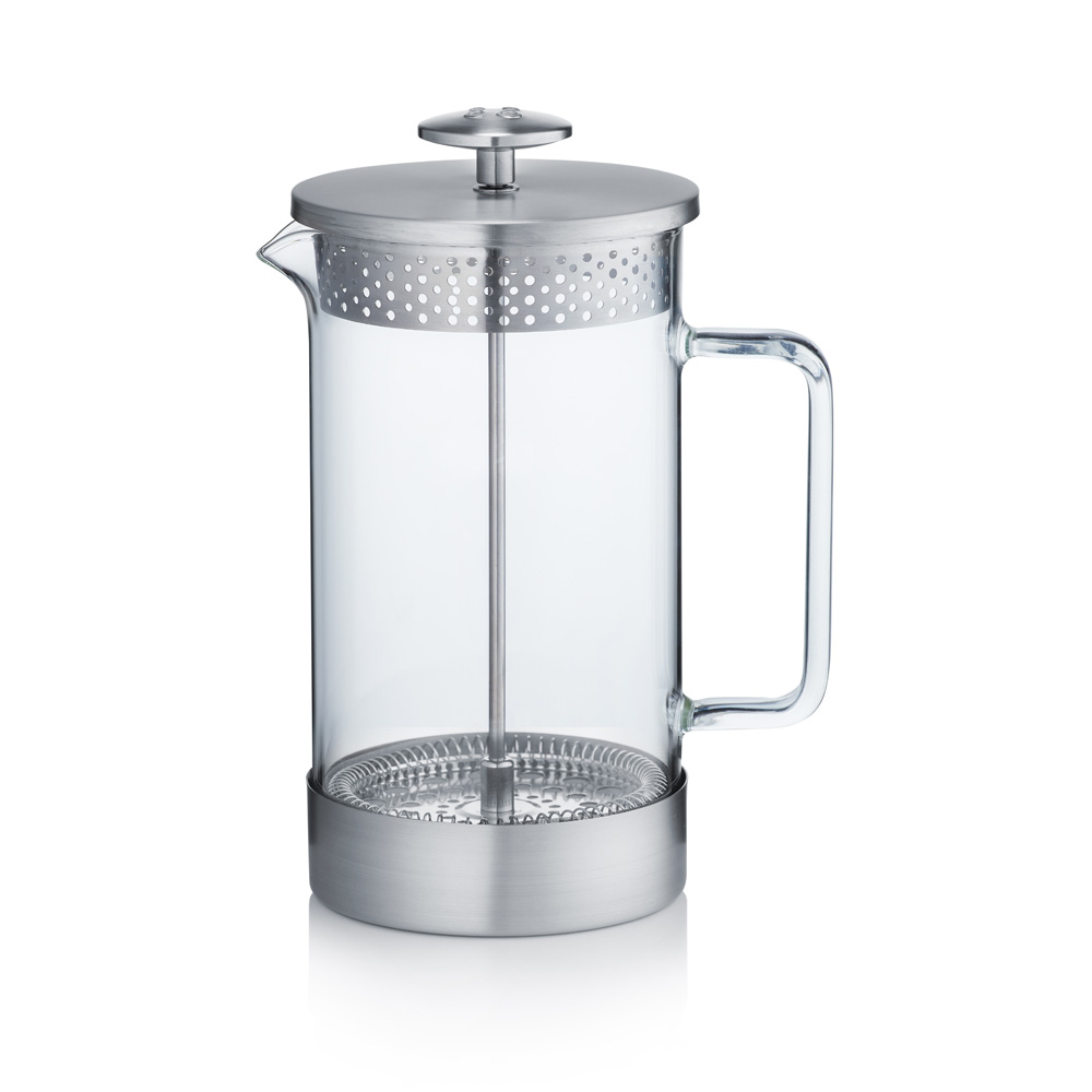 Det stora glashandtaget har utformats för att vara bekvämt att hålla när kannan är fullt och & Co knoppen ger större stabilitet när du pressar och kan enkelt greppas så att det fina rostfria filtret kan tas bort för rengöring.