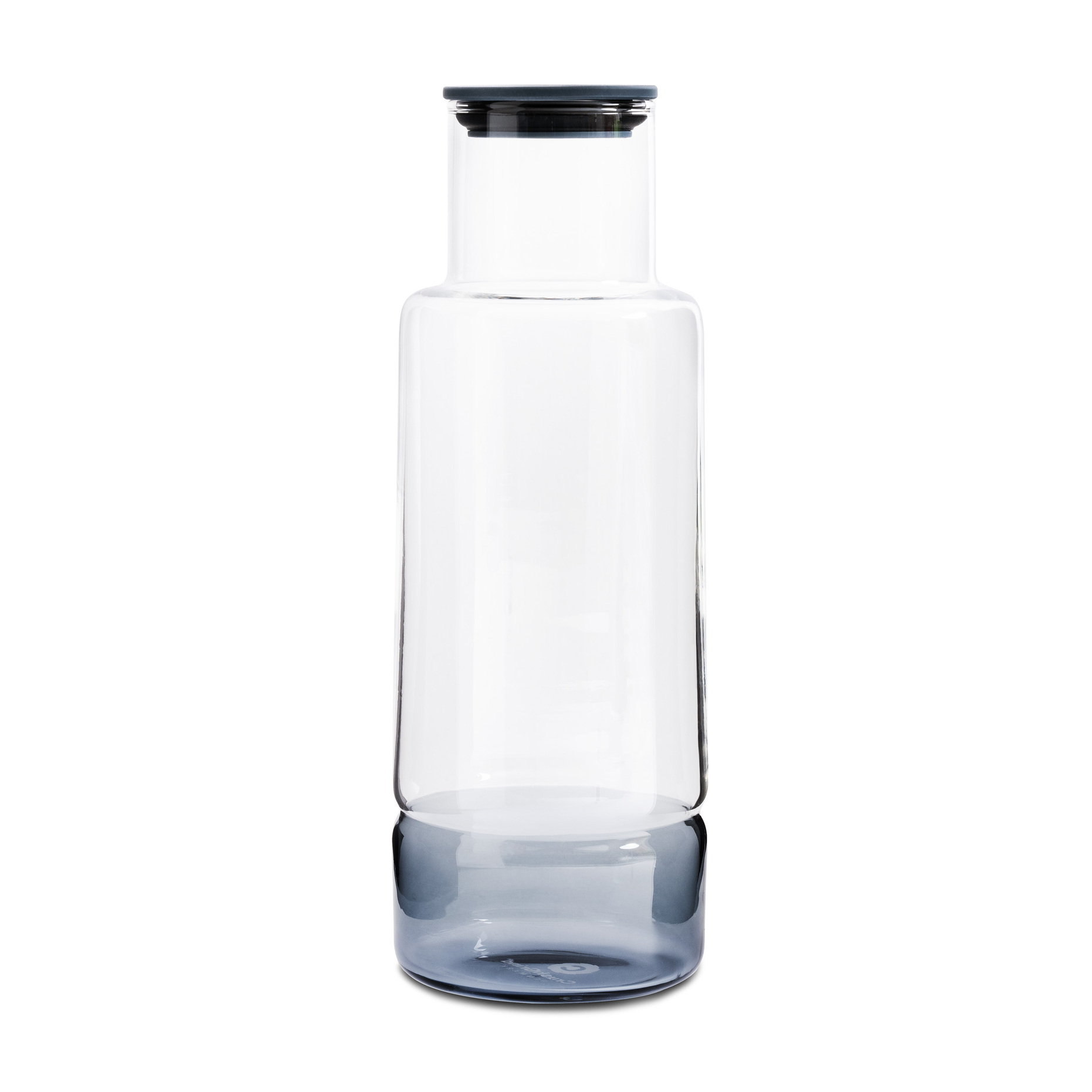 Billund-karaffen är gjord för att synas på bordet och tåla att användas ofta. Det tonade glaset ger en dynamisk effekt som förändras med innehållet och gör servering eller förvaring till en del av dukningen.