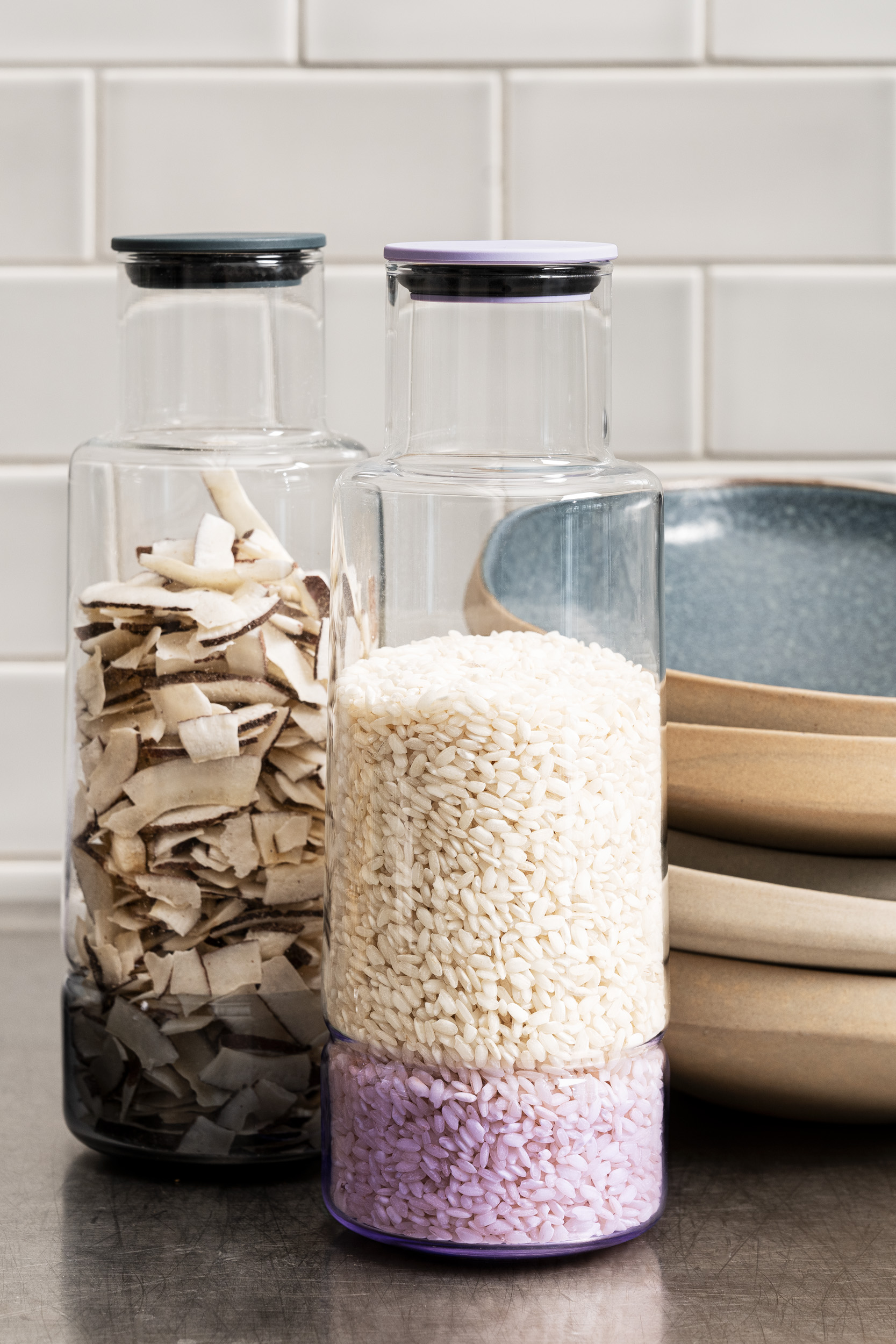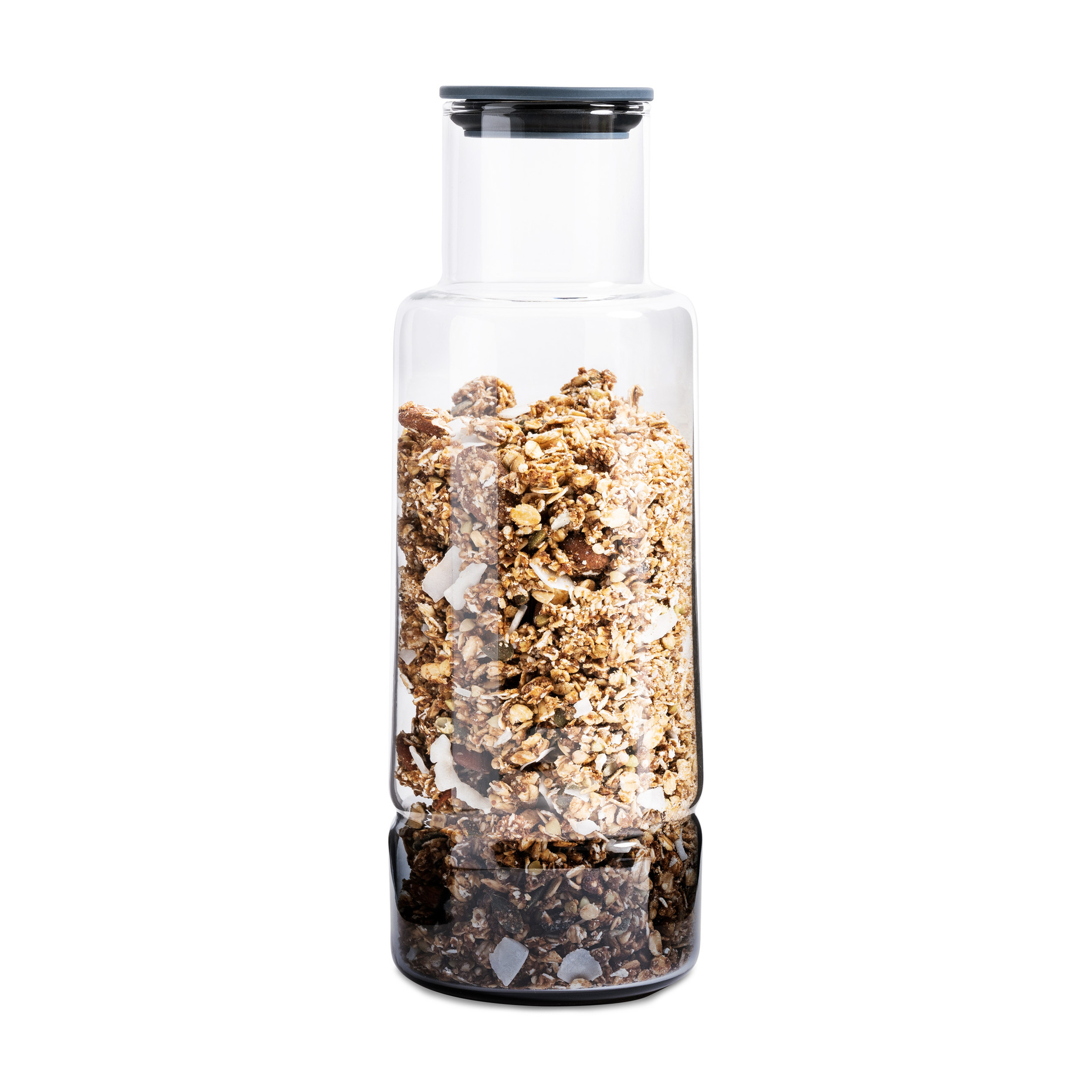 Ta av locket vid påfyllning. Använd för dryck eller som stilren förvaring för torra ingredienser.