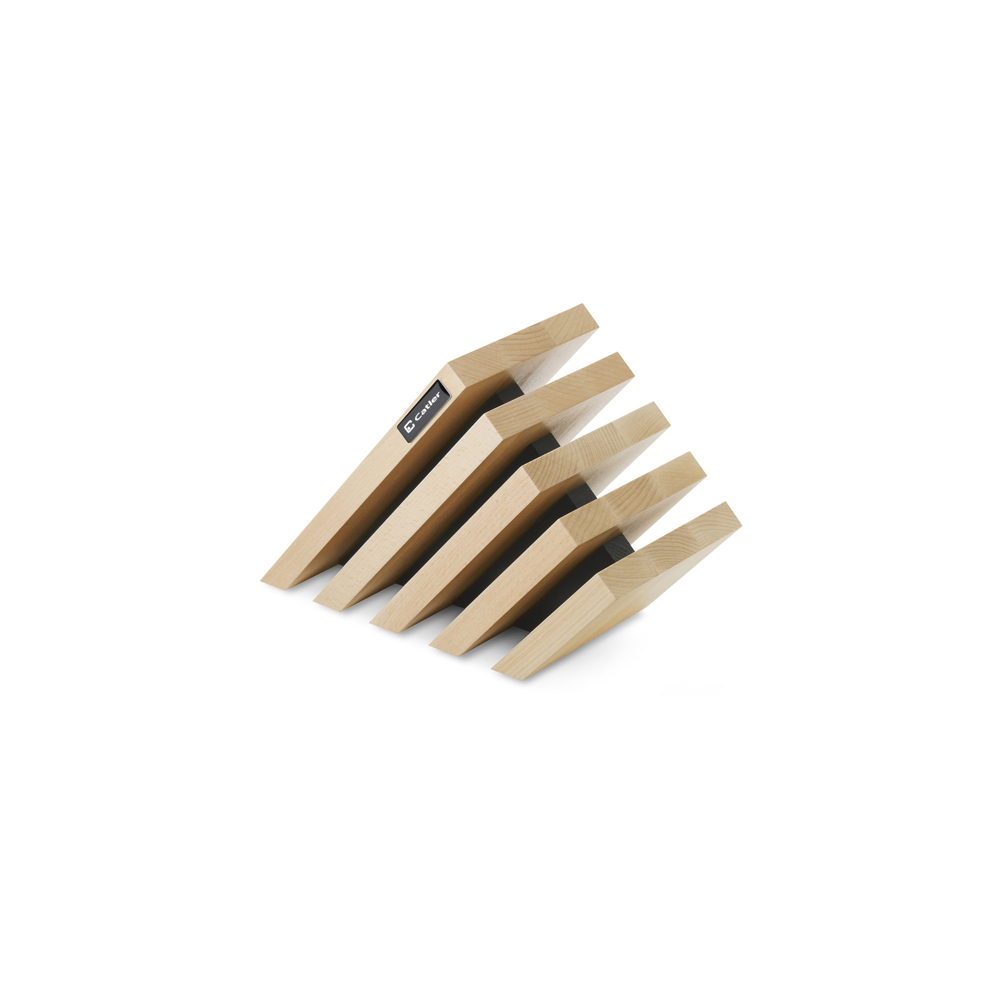 Den genomtänkta formen är kompakt medan den bekvämt rymmer 10 knivar. Den är gjord av bokträ av högsta kvalitet och innehåller en stark magnet och håller även stora knivar på plats.