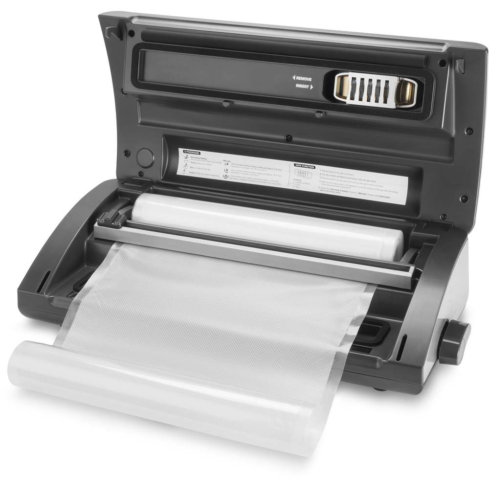 - Tillbehör: 3-meters folierulle, 5 påsar, flasklock, flaska och burk vakuumförslutningsslang