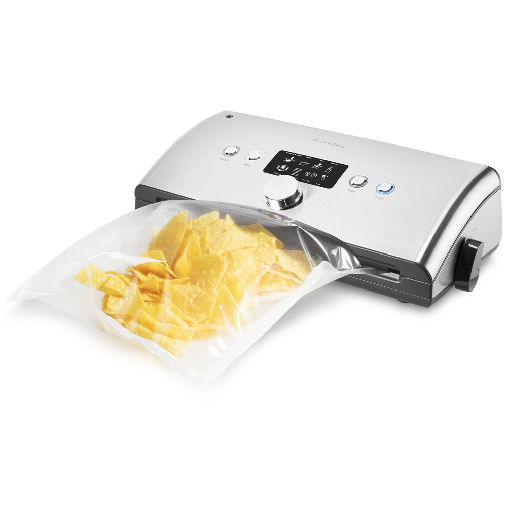 CATLER Vakuumpackare är den mest praktiska kökshjälpen. Vid vakuumförsegling behålls livsmedlet fräscht upp till 5x längre, matsvinnet minskar och du har perfekt överblick över lagrad mat, det blir mer plats och ordning i frysen, kylen eller skafferiet.