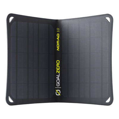 GoalZero Nomad 10 är en vikbar, portabel solpanel optimalt när du är på språng. Det kan fällas ned till en fjärdedel av sin fulla storlek, vilket gör dem idealiska för situationer där strömbehovet är sporadiskt och utrymmet är begränsat. Att lägga till en Nomad-solpanel till ett Yeti-kraftverk skapar den ultimata off-grid-strömförsörjningen för människor på språng.