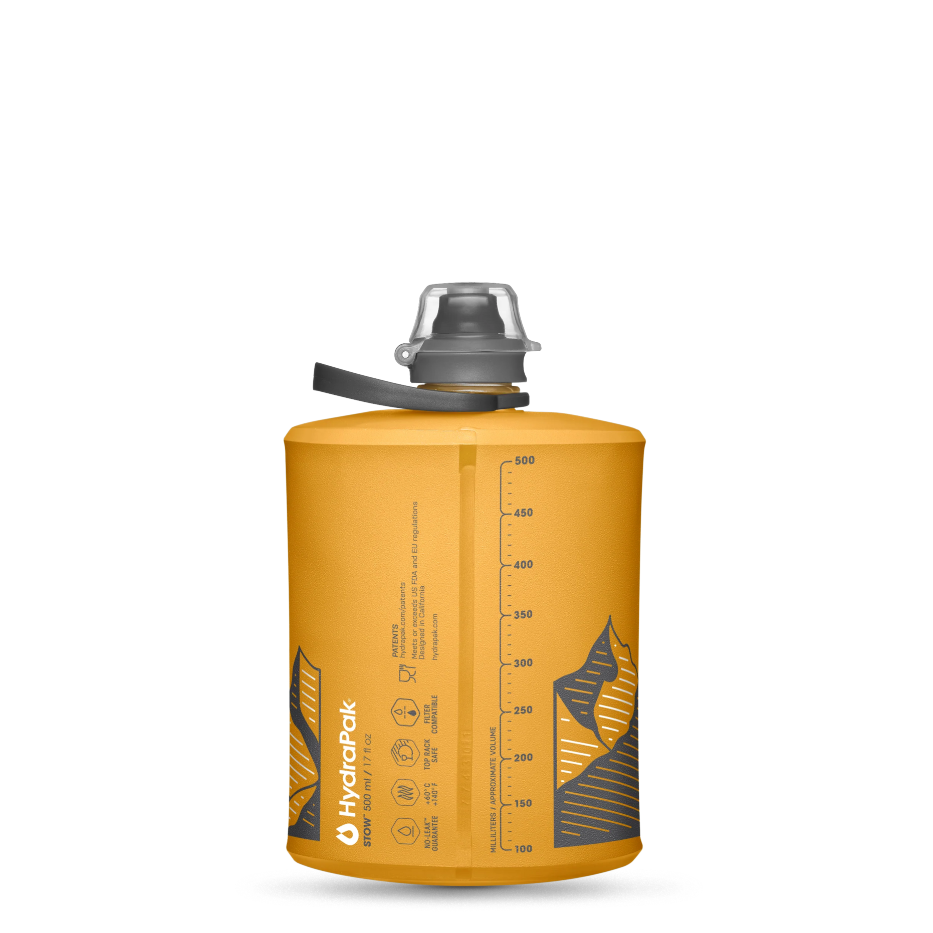 Stow Bottle 500 ml från Hydrapak är en slitstark och extremt lätt vattenflaska. När denna flaska inte är fylld väger den endast 43 gram, vilket gör den perfekt att ha med på turer utomhus när du vill spara på vikten. Den är flexibel och kan ta väldigt lite plats eftersom att den är hopvikbar. Flaskan är tillverkad av hållbar TPU och har en öggla som underlättar att hålla och förvara den.