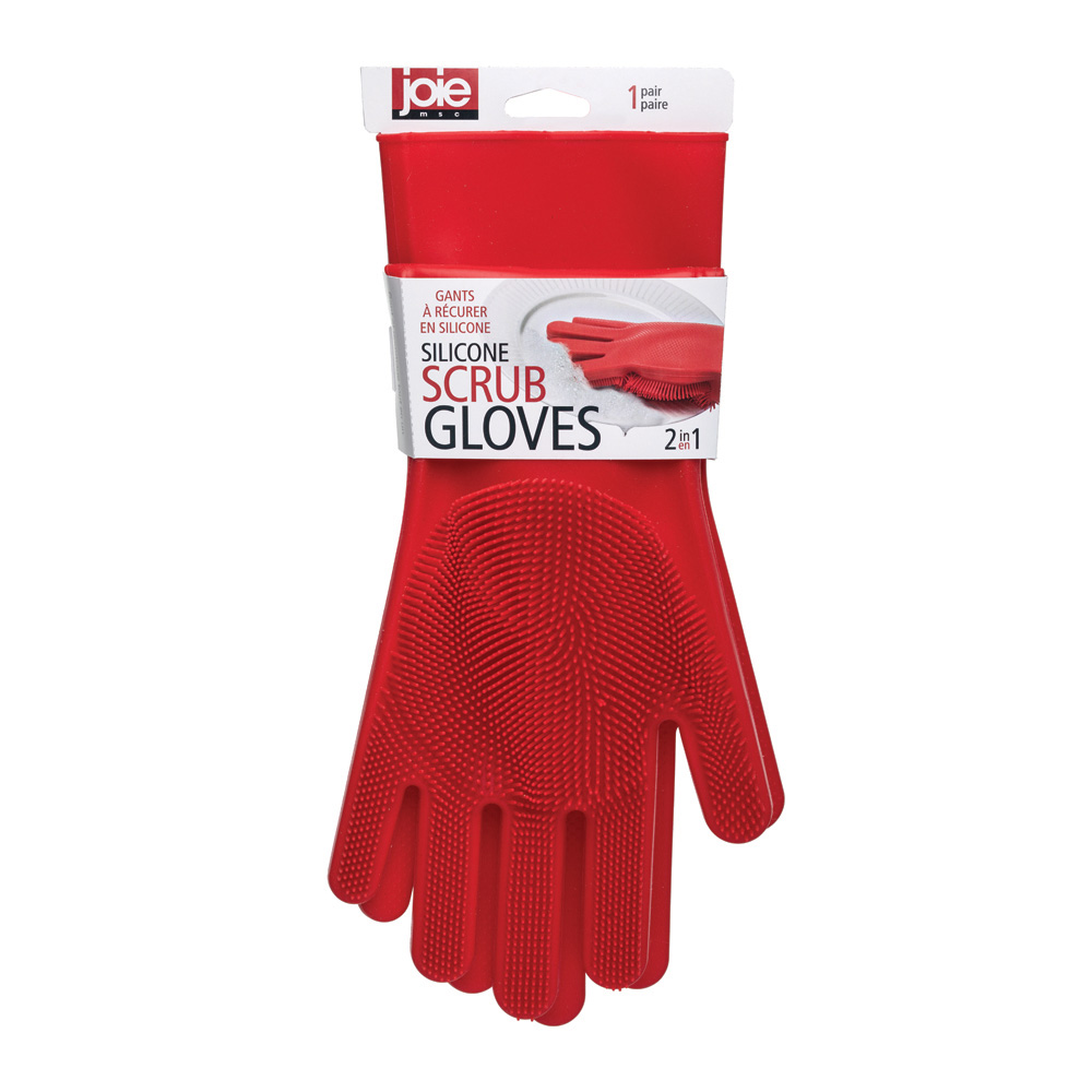 Joie Diskhandskar med en funktionen som en diskborste. Diskhandskarna är av silikon. Miljövänligt och praktiskt. Säljs i sorterade färger.