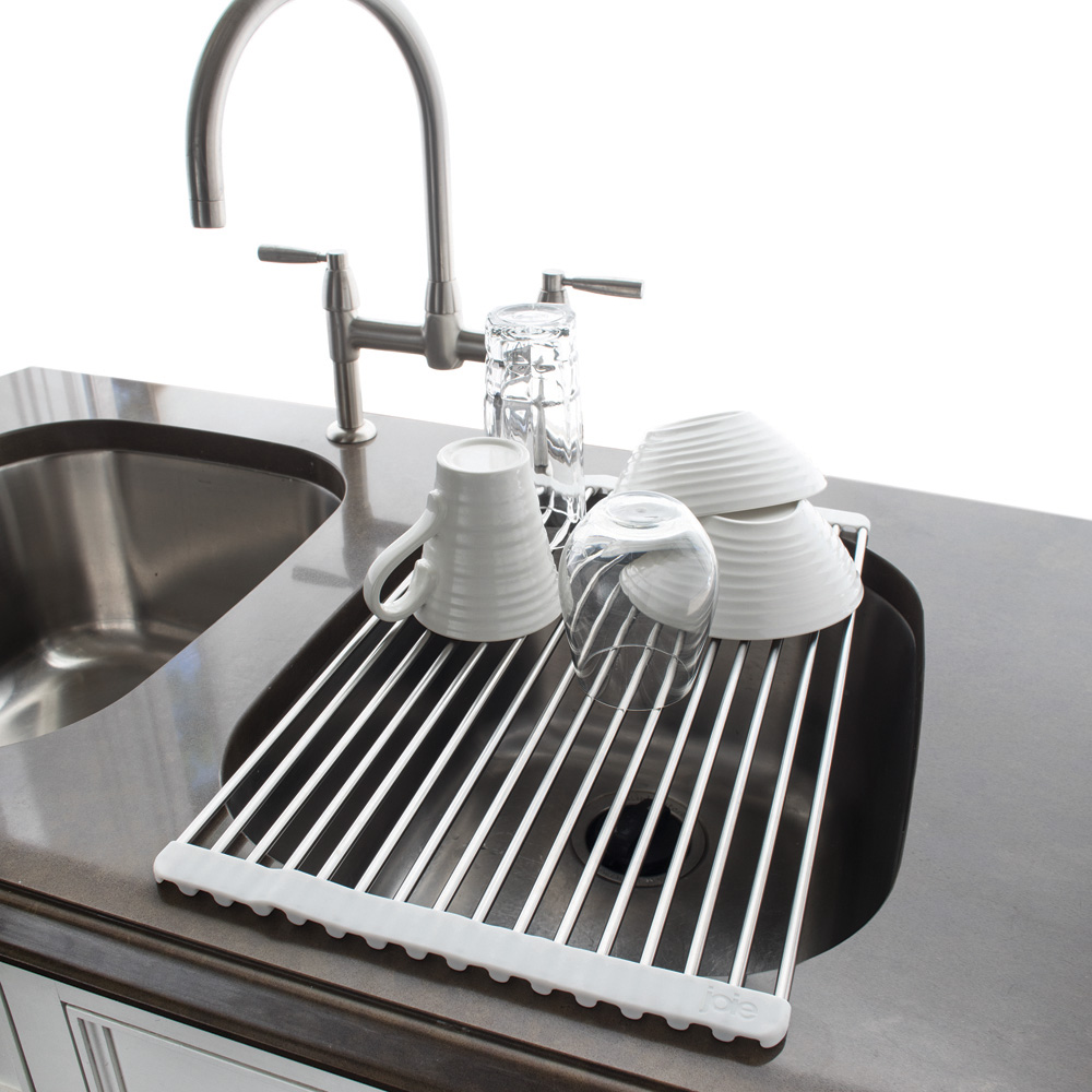 Ett smart diskställ från Joie där man placerar det över diskon för att skapa ytterligare en torkyta och vattnet droppar naturligt ner i botten på diskhon.