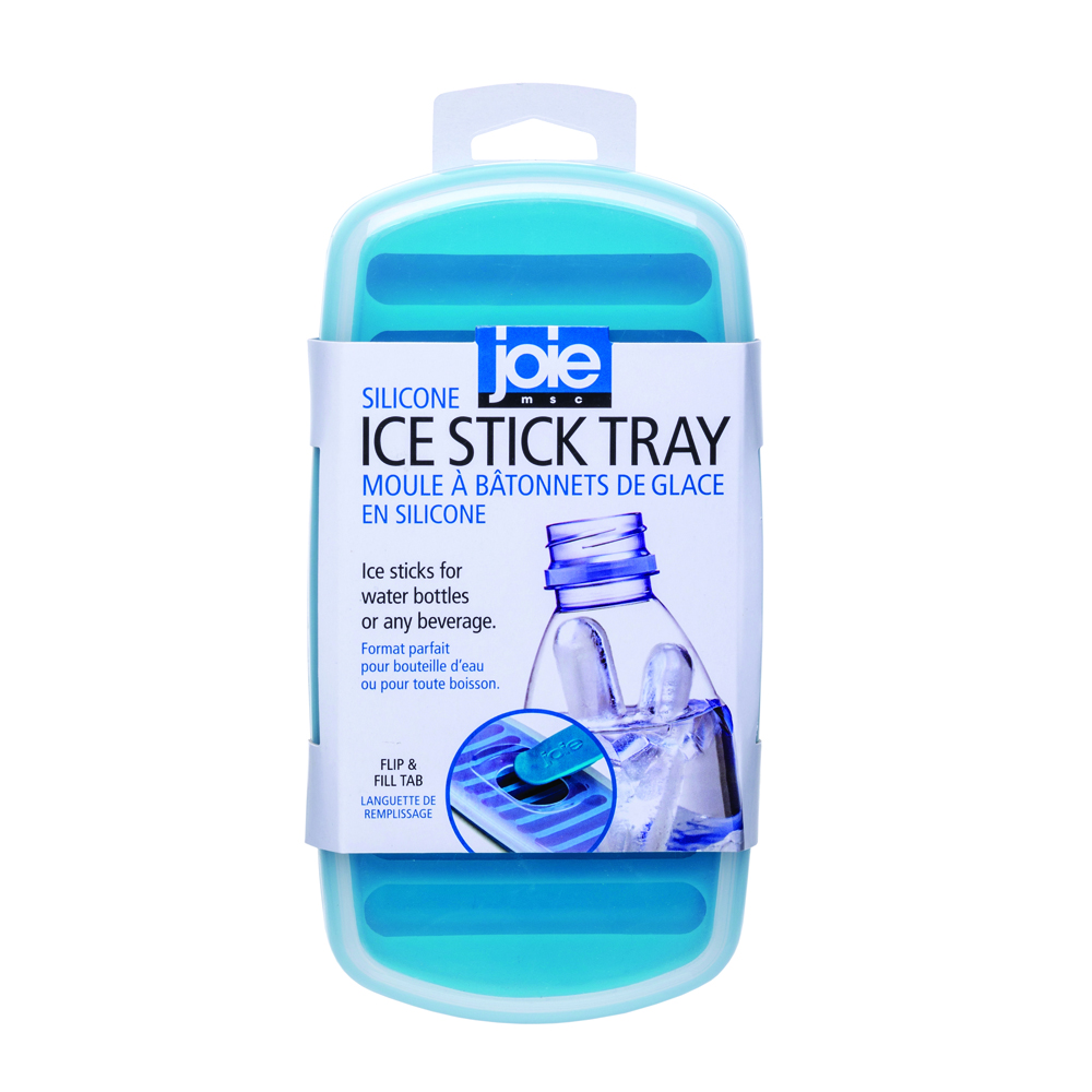 Joie Isbricka av silikon med tättslutande lock för spillfri hantering. Isbitarna är smala långa stickor som är lätt att få ner i vattenflaskor. Säljs i sorterade färger.