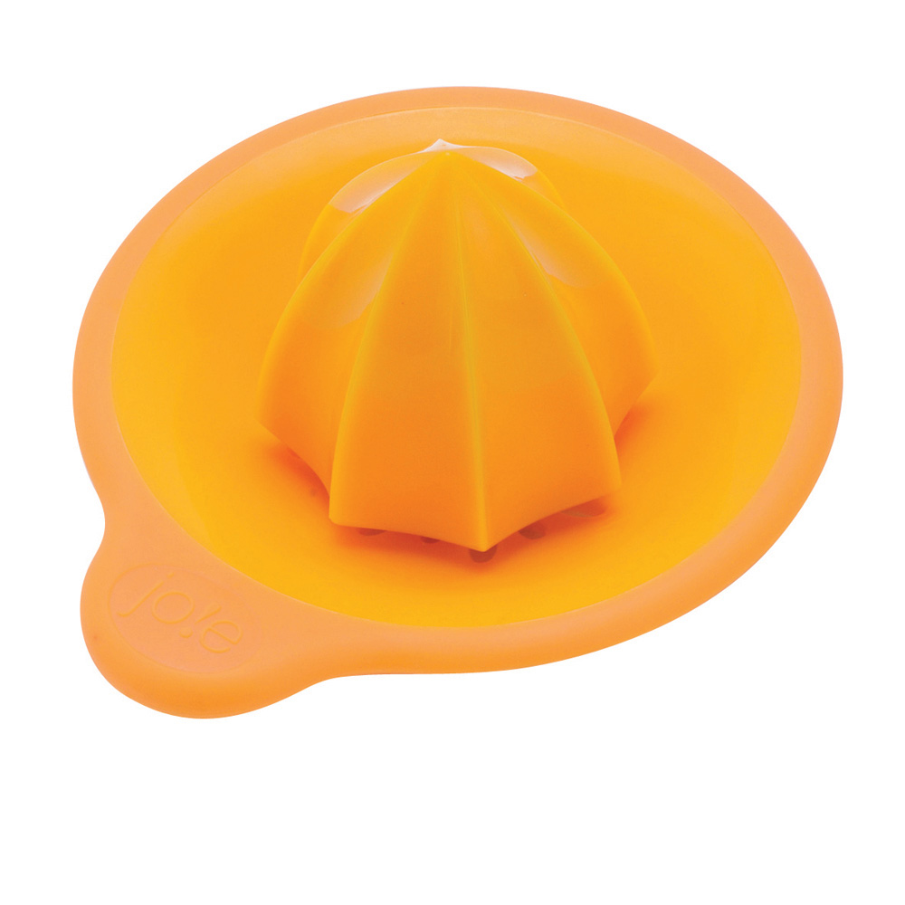 Joie Juicepress pressar apelsinen direkt i dricksglaset. Undersidan av juicepressen har en gummi yta som hindrar att pressen glider.