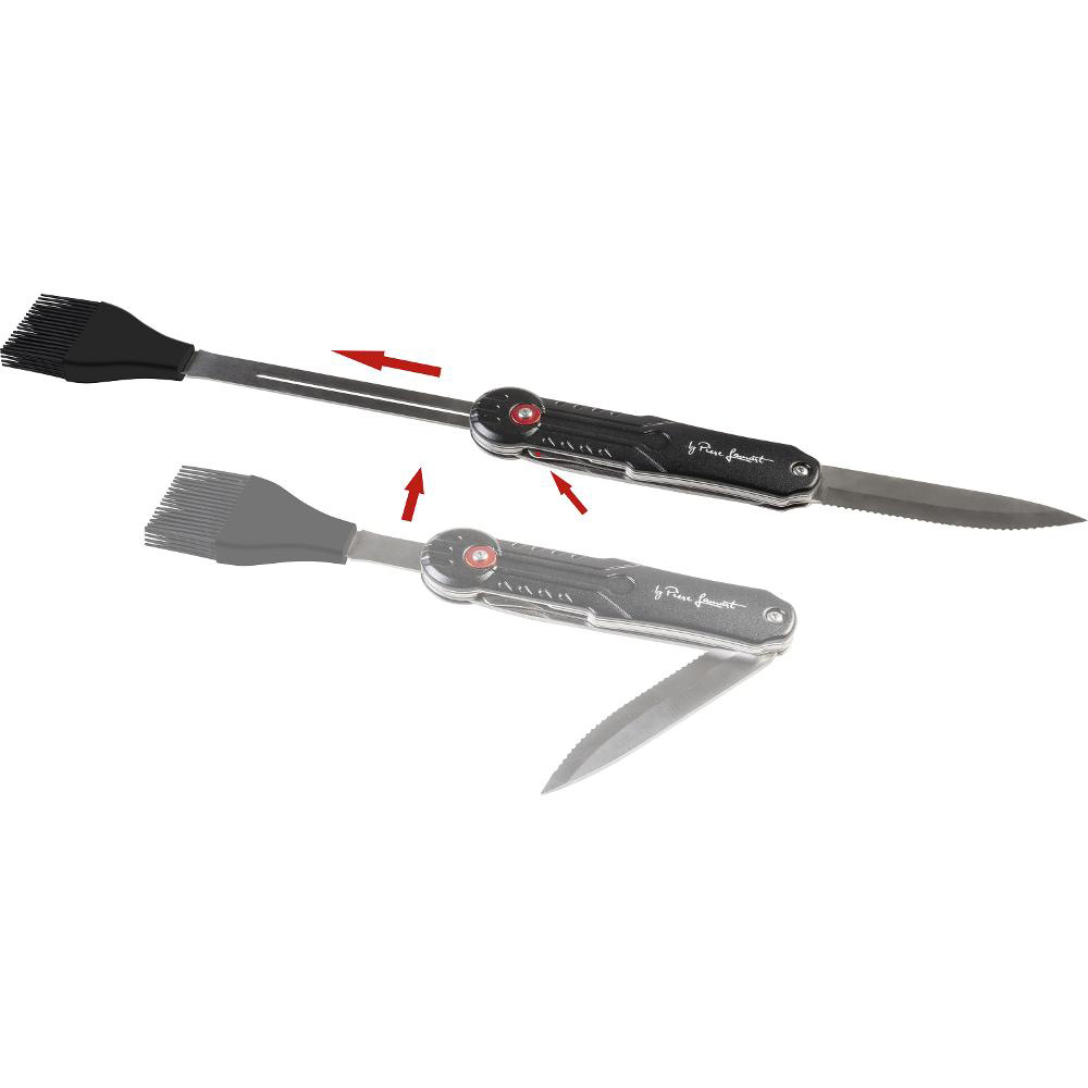 - Avtagbara och teleskopiska redskap – gaffel, vändare, flasköppnare, silikonborste och stekkniv.