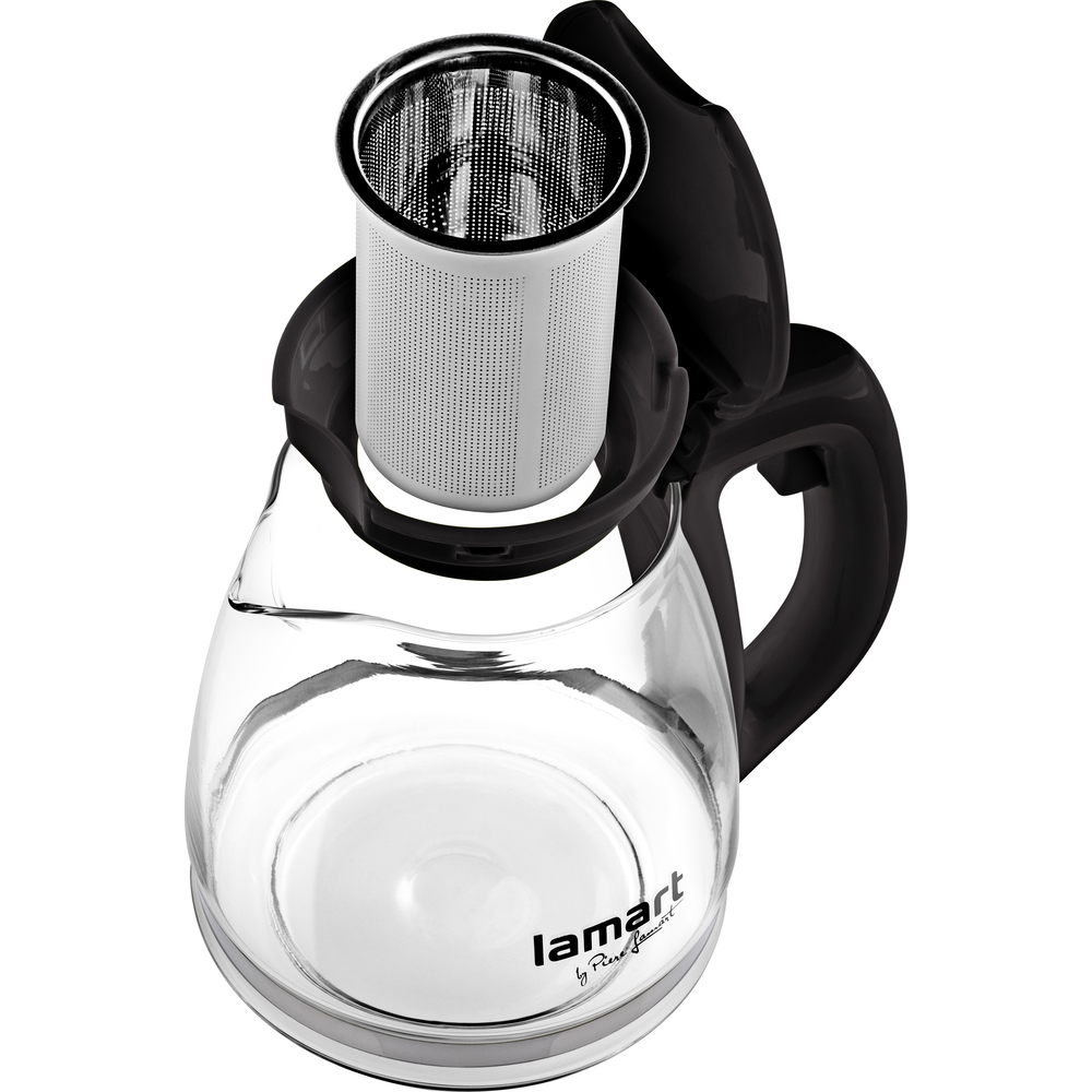 Lamart Tekanna av glas lämplig för alla typer av te, te-drinkar och andra kalla drycker. Kantens handtag är gjort av hållbar plast. Tekannan innehåller en sil av rostfritt stål för löst te, fruktbitar eller örter. Kannan är utrustad med ett plastlock för lätt åtkomst för rengöring och påfyllning.