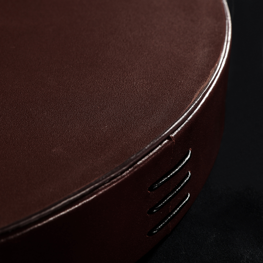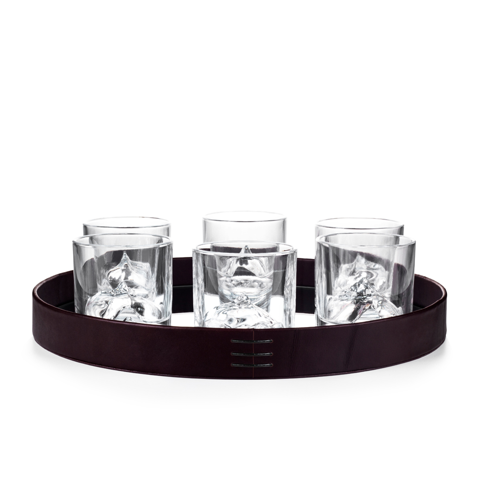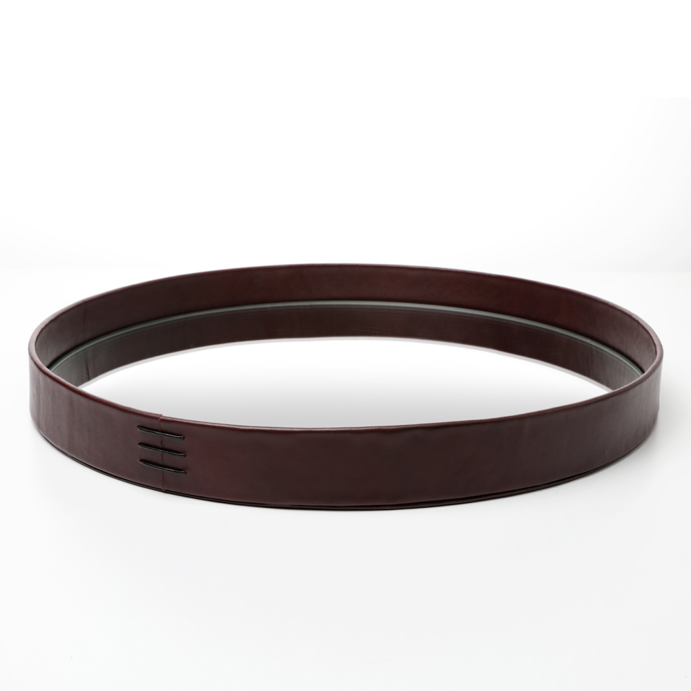 Liiton Serveringsbricka är 38 cm i diameter. Tillverkad av fulnarvsläder och har en hel lädersöm.