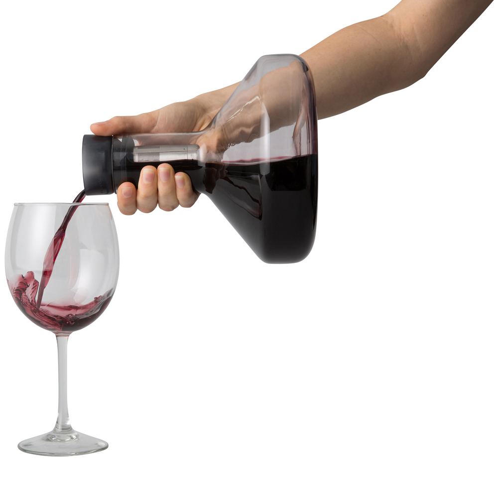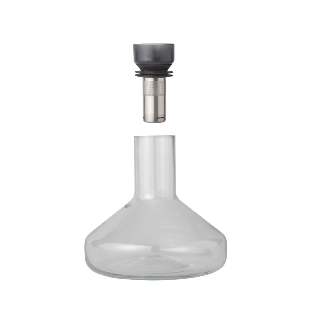 Rabbit Pura Decanting-systemet luftar vin när du häller i det och filtrerar vin medan du häller ut vin. Luftaren skickar ut vinet utmed sidan av karaffen för luftning och mikrofiltret tar bort sedimentet när du häller ut. Luft- och filtersystemet sitter kvar i karaffen medans man serverar. Rymmer en 750 ml vinflaska.