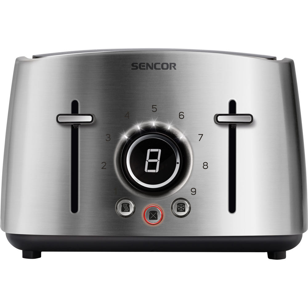 SENCOR Brödrost som klarar att rosta fyra skivor samtidigt (längd 135 mm) och tillverkat i rostfritt stål.