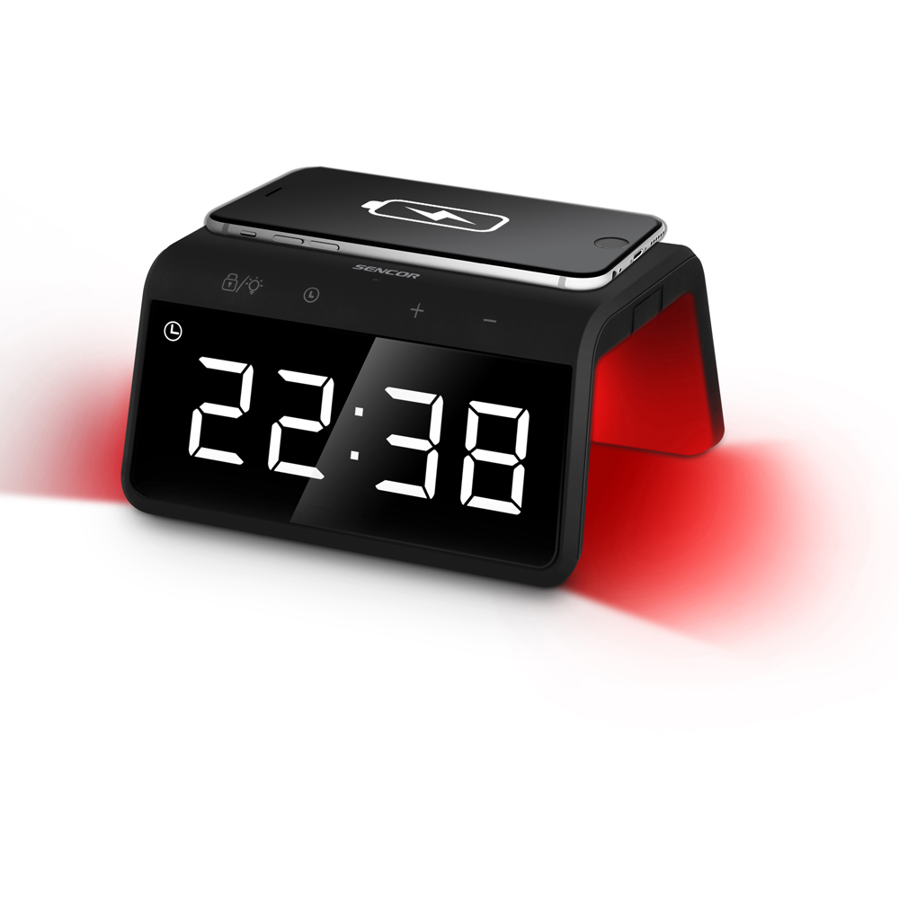 SENCOR Digital väckarklocka med 10W Qi snabb trådlös laddare