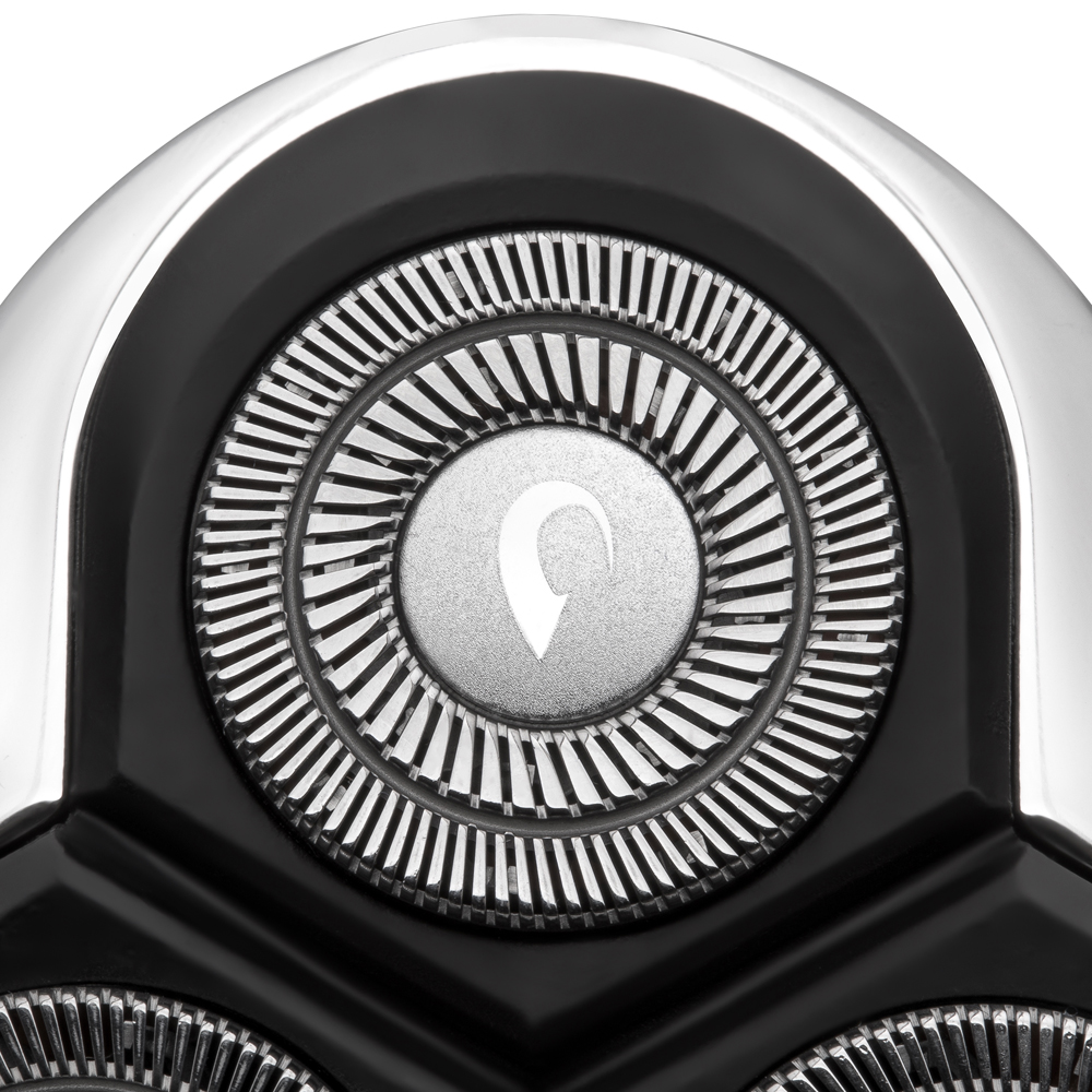 - Tre oberoende lutande rakningshuvuden ger maximal komfort vid rakning utan att irritera huden