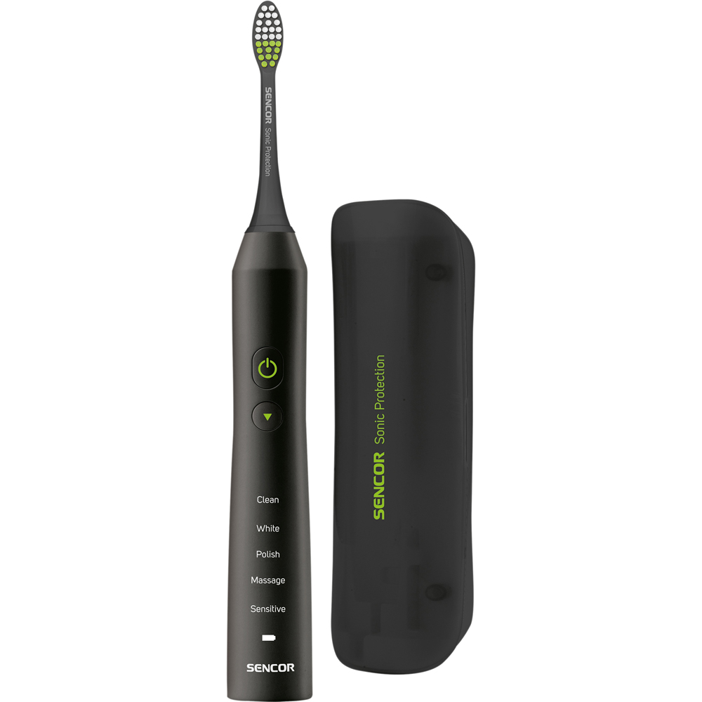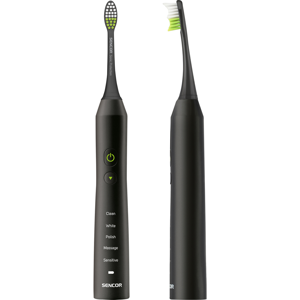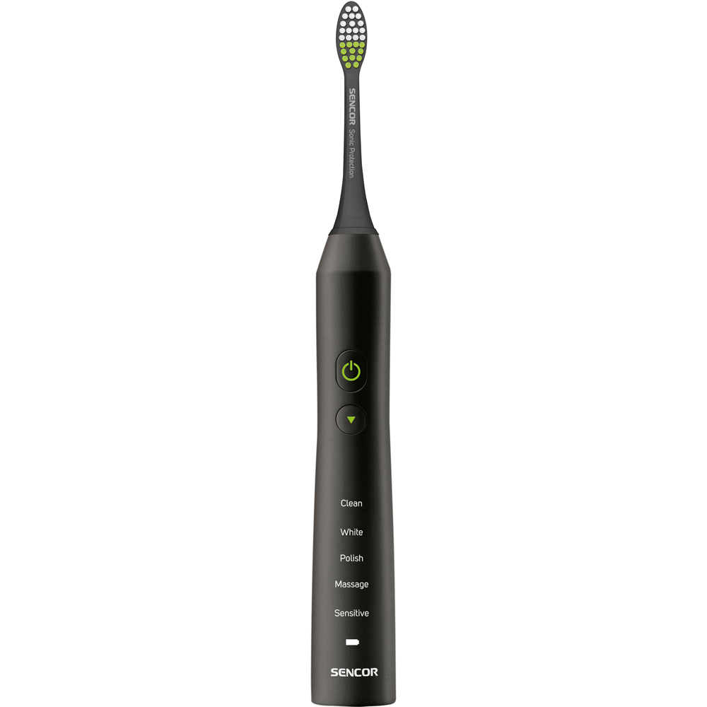 SENCOR Eltandborste har en högfrekvent upp- och nedtorkarrörelse, vilket gör att den kan utföra flera tusen rörelser per minut. Förutom det höga antalet rörelser, imiterar den perfekt manuell rengöring. Ljudtekniken bryter på ett tillförlitligt sätt upp plack runt tänderna och tar bort det och borstar tänderna betydligt effektivare än en vanlig tandborste med upp till 75 %.