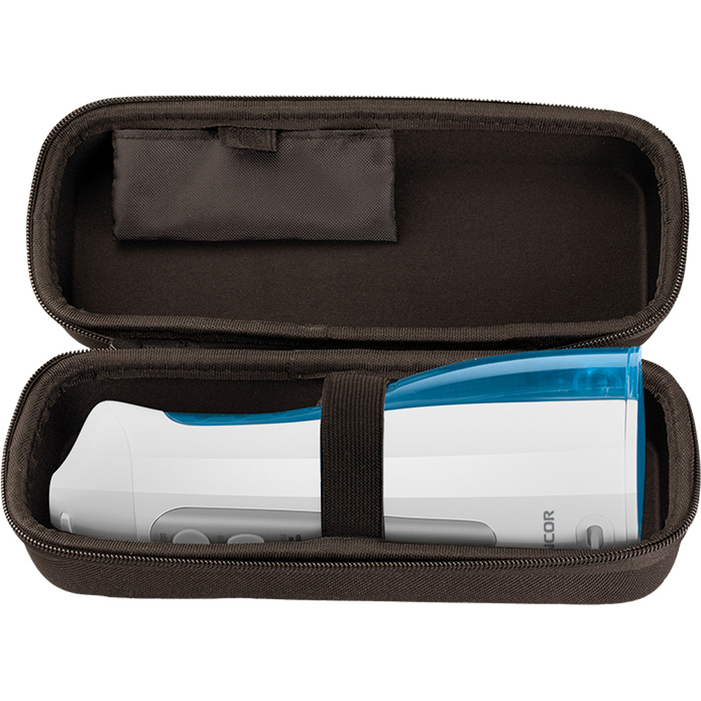 Det finns en stor avtagbar tank med både topp- och bottenfyllning, med upp till 150 ml vatten eller munlösning. Den är både lätt och ergonomiskt formad för att passaa perfekt i varje hand och vara väldigt bekväm att hantera.