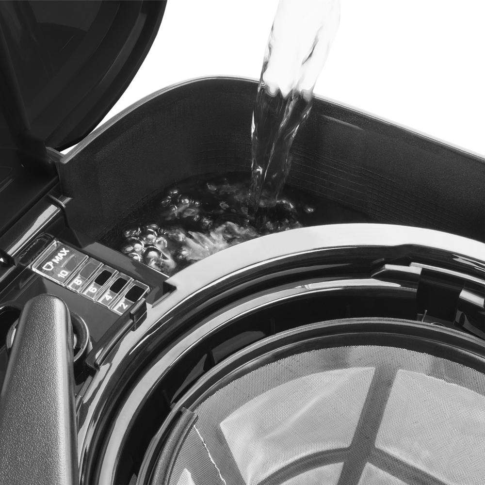 - Vattennivå-märke på tanken och vattenkokaren som anger antal koppar