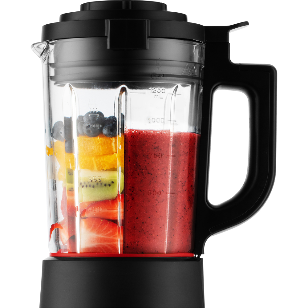 All tillagning sker i en rymlig 1,2-liters behållare tillverkad av högkvalitativt borosilikatglas. Varför valde Sencor detta material? För att det är tåligt, fritt från skadliga ämnen och klarar extrema temperaturer – även när du använder heta ingredienser. Detta bidrar till både smakupplevelse och bevarade näringsvärden.