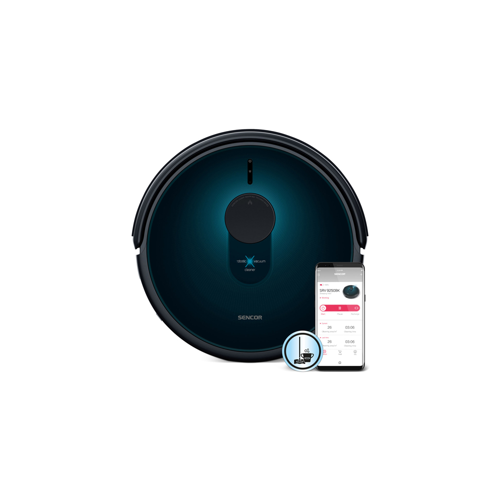 Sencor skapade en anpassad mobilapp för robotdammsugaren, där du kan ställa in funktioner och lägen och övervaka alla mina nuvarande tillstånd, som batterinivå eller den aktivitet som utförs. Styr den från soffan, sovrummet eller jobbet!