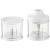- Tillbehör: 700 ml bägare med lock, 500 ml skål för hackning, visp