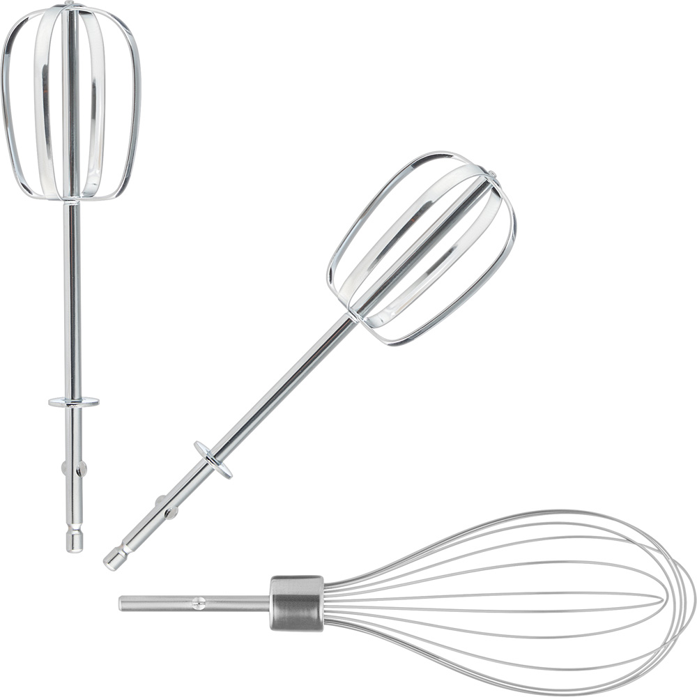 - 2 förkromade vispar för att vispa mjölkgrädde, krämer, potatismos, pålägg