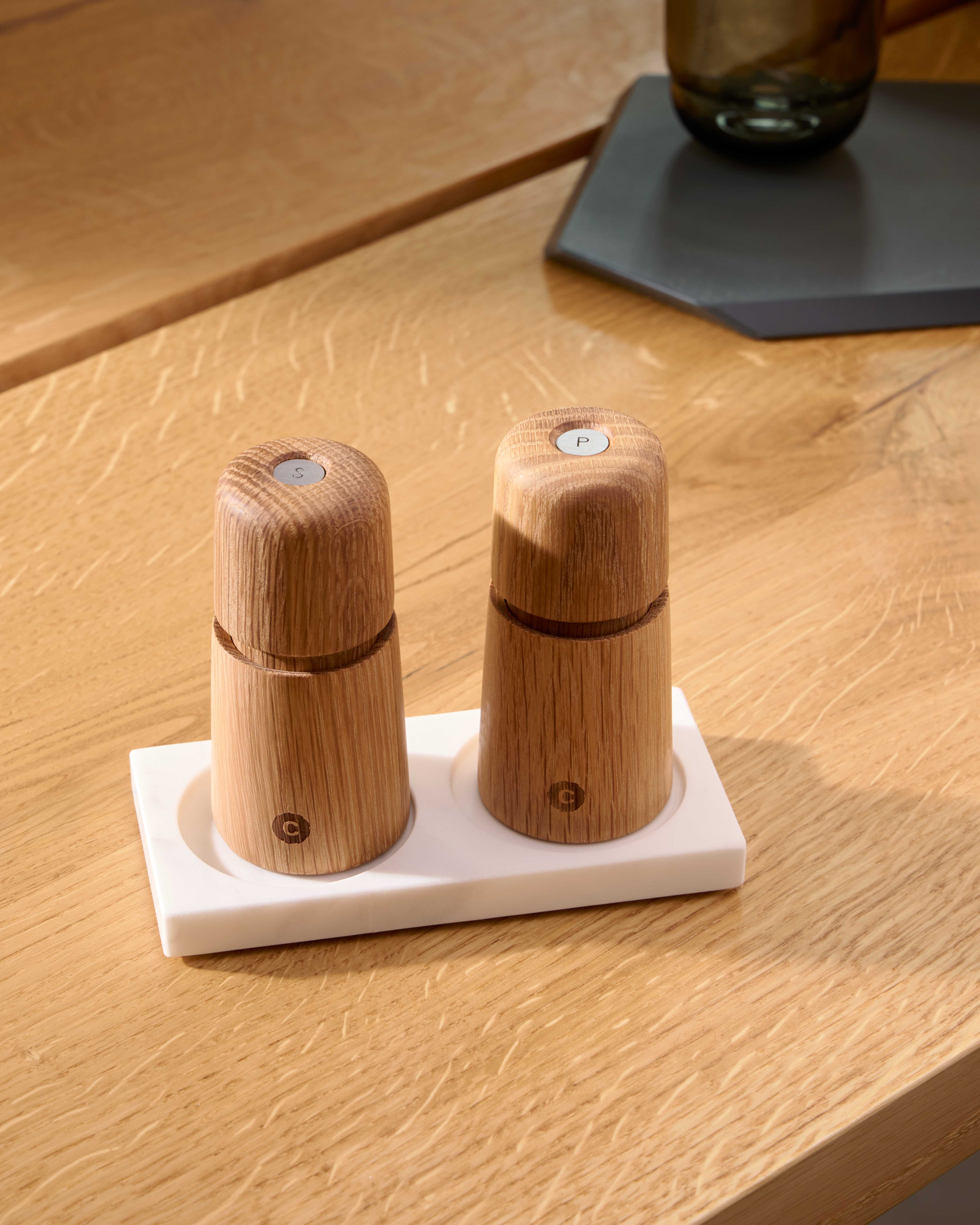 Välj material och kombinera med kvarnar och tillbehör. Tabletopper skyddar underlaget och samlar upp spill för en renare bordsyta.