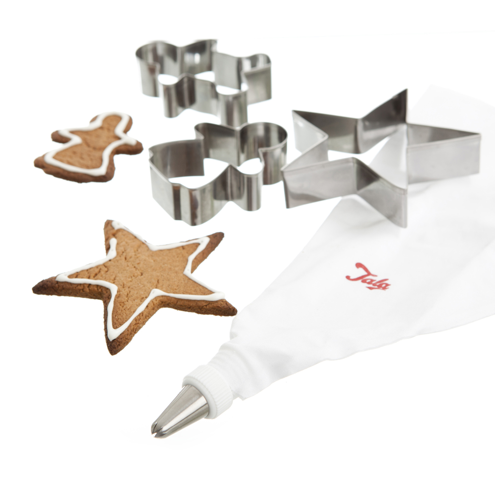 Tala Retro Pepparkaksset är ett set med Pepparkaksformar, spritspåse och en tyll