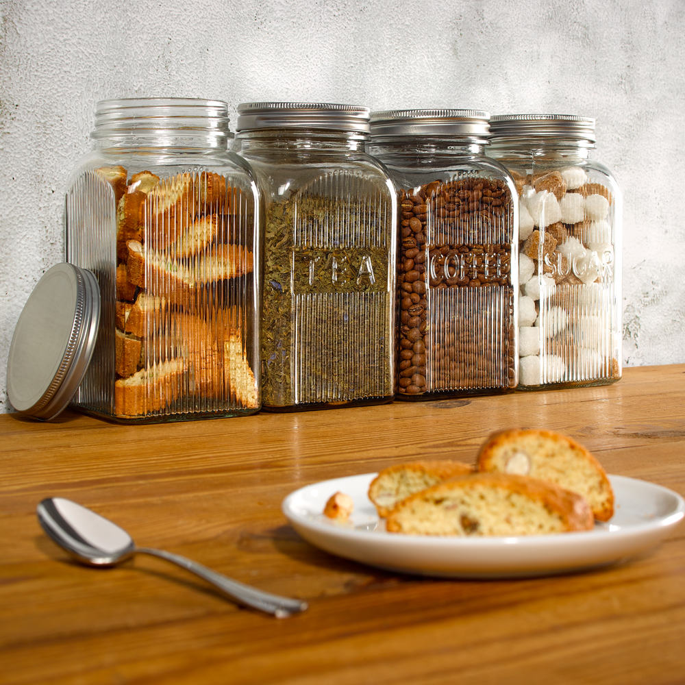 Tala Glasburk för alla sötsugna där ute! Bevara färskheten i dina sockergranuler med denna burk av präglat glas.