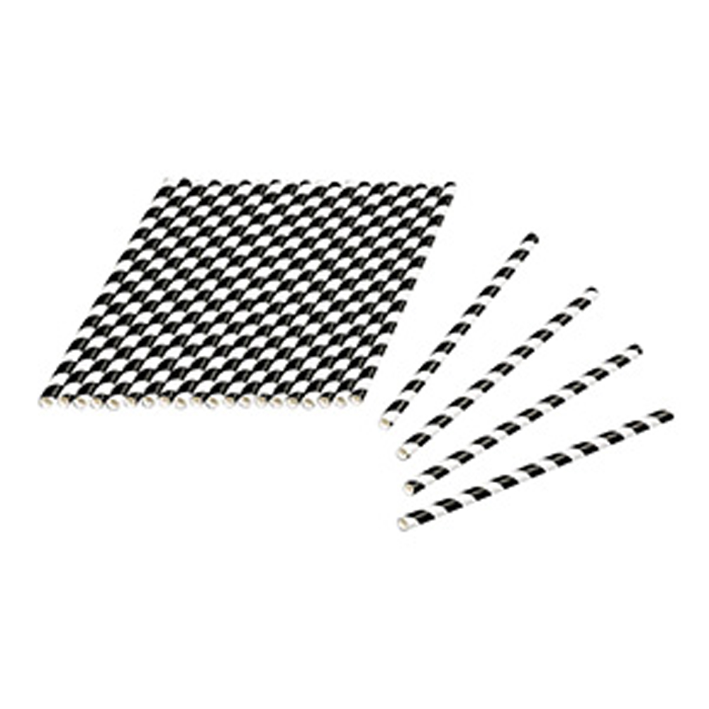 Talas svart/sit randiga sugrör av papper är perfekta för party drinkar och saftkalas. Robusta och återvinningsbara. Det miljövänliga alternativet till plaststrån.