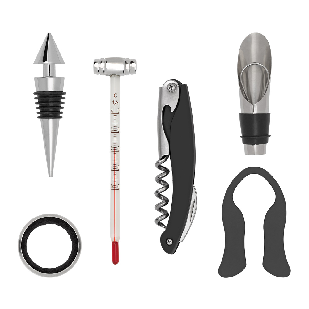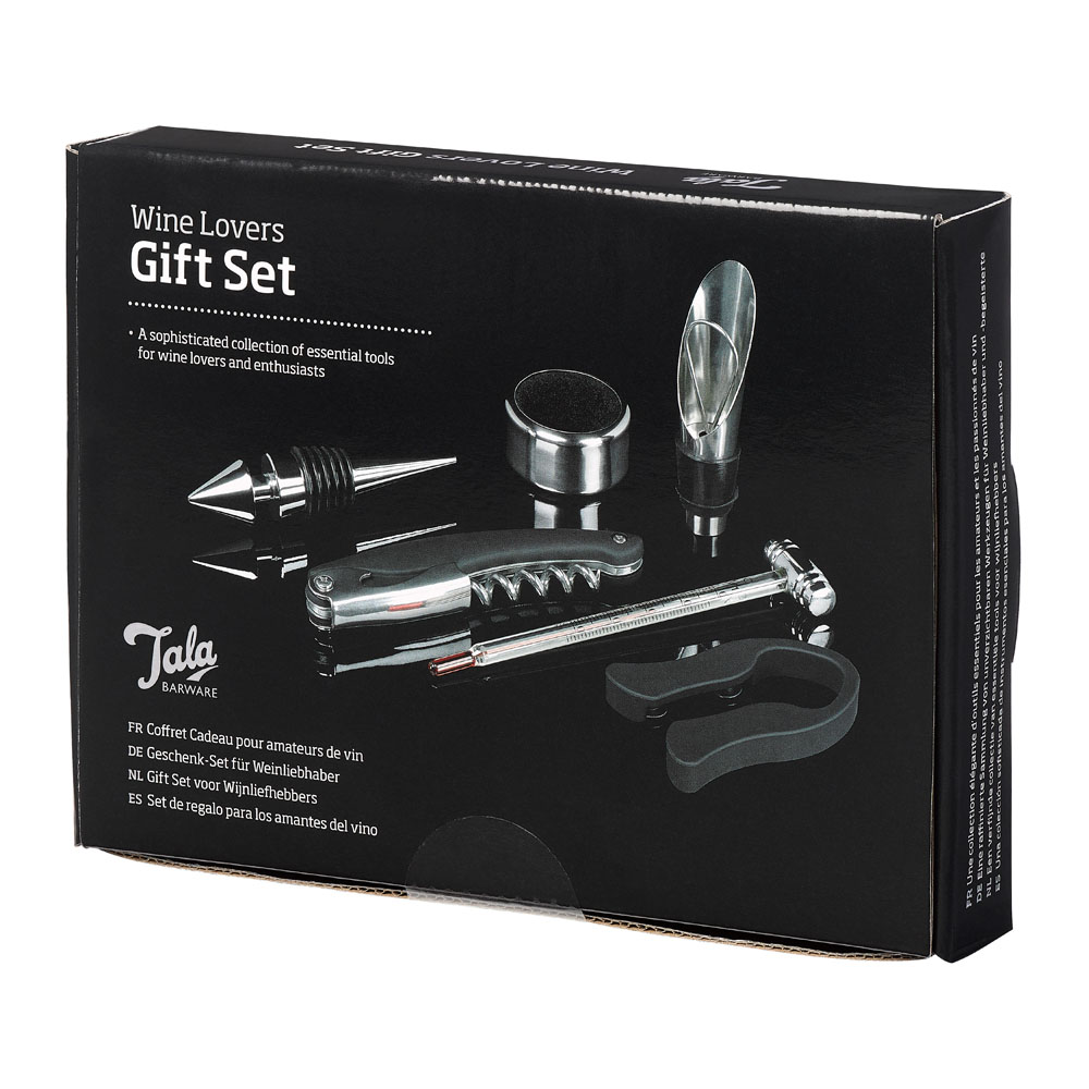 Tala Wine Lovers presentset innehåller korkskruv, dropptopp, folieskärare, vinhällare, vinkrage och en termometer för att säkerställa att ditt vin har den perfekta temperaturen.