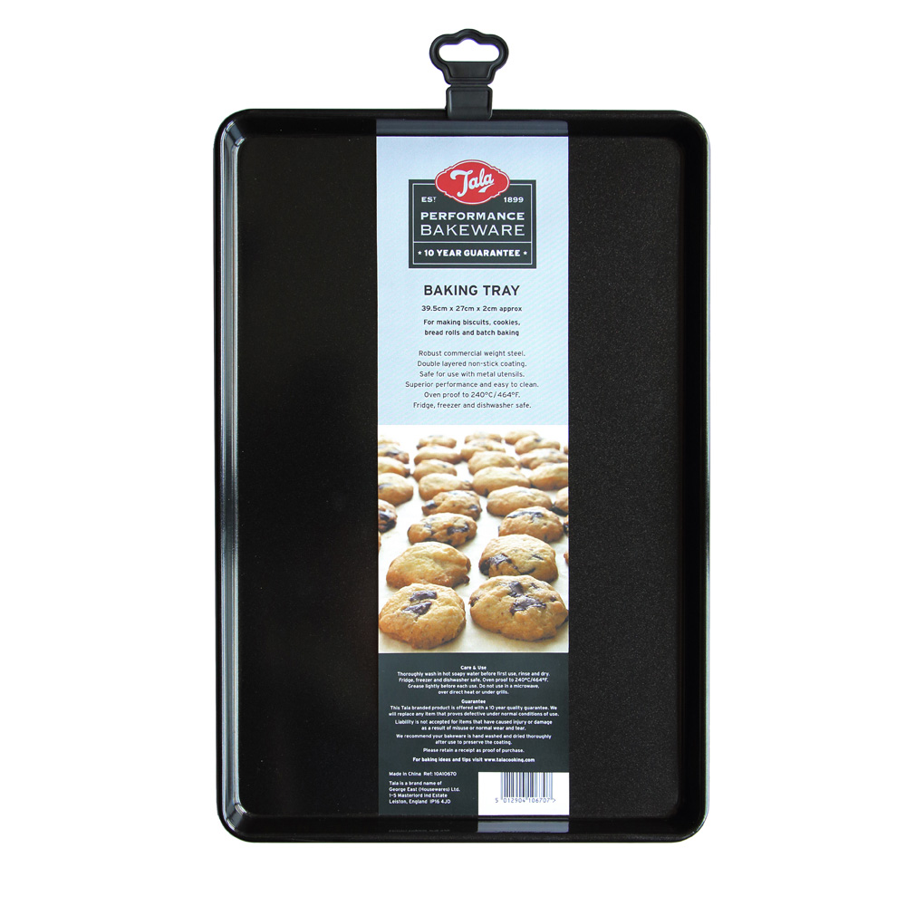 Tala Performance Bakplåt är en del av Tala Performance Bakeware som är den bästa non-stick serien på marknaden. Serien är belagd med dubbla lager av "Premium Whitford Eclipse Coating". Detta innebär att produkten kan användas med metallredskap och levereras med en tio års garanti.
