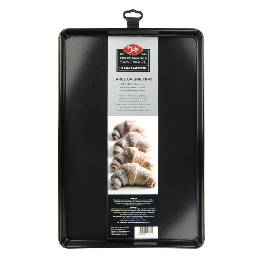 Tala Performance Bakplåt är en del av Tala Performance Bakeware. Serien är belagd med dubbla lager av "Premium Whitford Eclipse Coating". Detta innebär att produkten kan användas med metallredskap och levereras med en tio års garanti. Den tål kyl, frys och diskmaskin. Tala Performance är den bästa non-stick serien på marknaden.