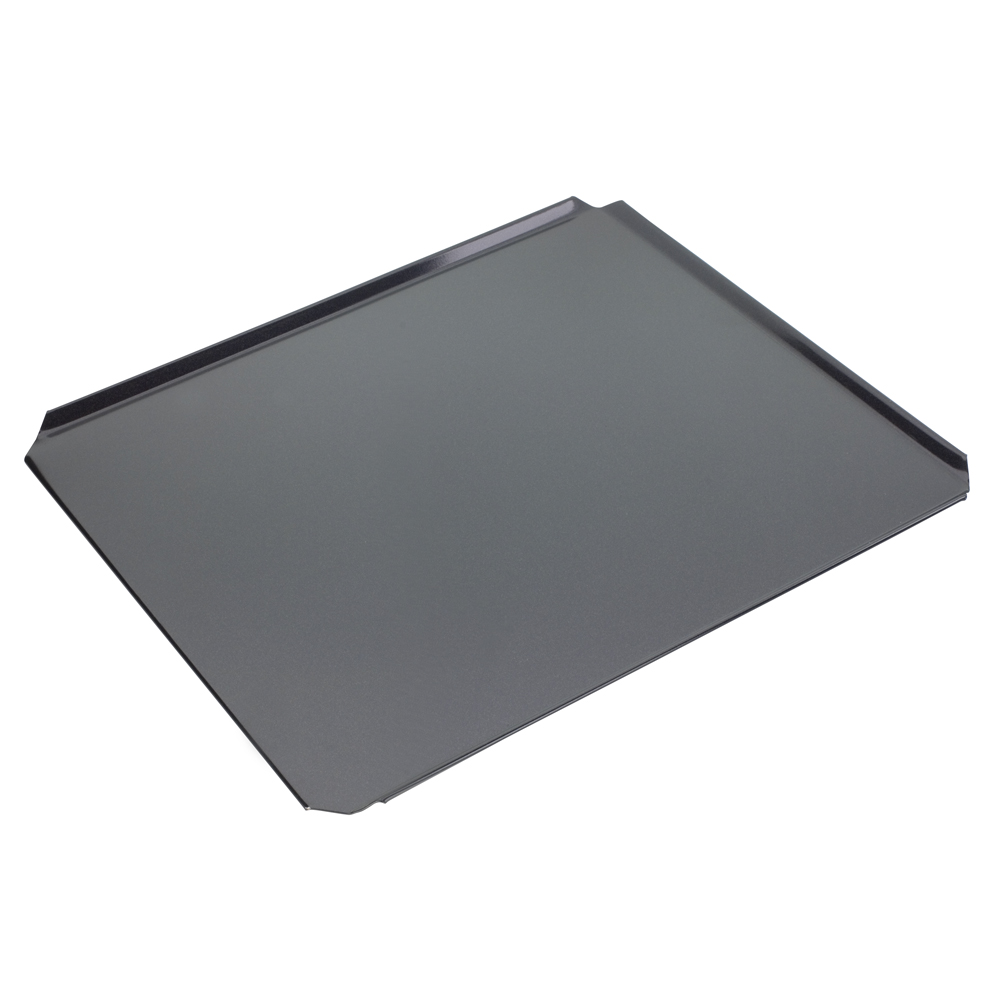 Just denna plåt är bra för bakning av småkakor, bullar mm. Ena kortsidan är utan upphöjd kant vilket gör det lätt att få bort de färdiga bakverken från plåten utan problem