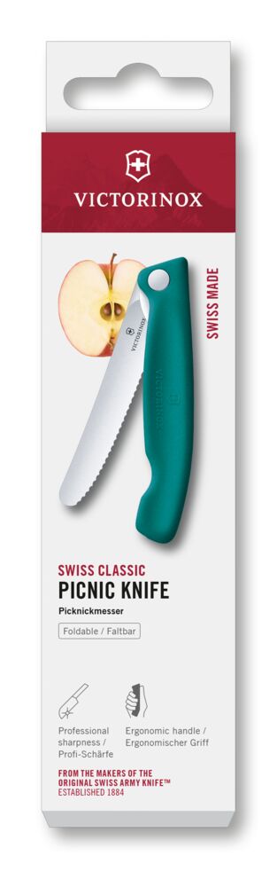 Victorinox Swiss Classis Picnic Knife är en vikbar skalkniv, perfekt för picknicken, vandringsturen eller varför inte till svampplocket. Otroligt mångsidig, högkvalitativ, lätt att fälla ut och in samt lätt att bära med vart som helst. De färgglada handtagen gör kniven till ett måste vid alla tillfällen då det ska skalas och skäras.