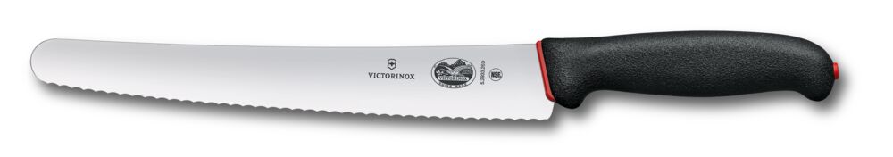 Victorinox berömda brödkniv med Fibroxhandtag och 26 cm långt blad (exklusive handtaget). Fibroxhandtaget är format för handen med mjukt formade skydd för handen som ger säkrare användning och bättre grepp. Användningsområdet är inte begränsat till bara bröd utan kan även med fördel användas för att filea lax, skära grönsaker och kött mm. En storfavorit i restaurangköken.